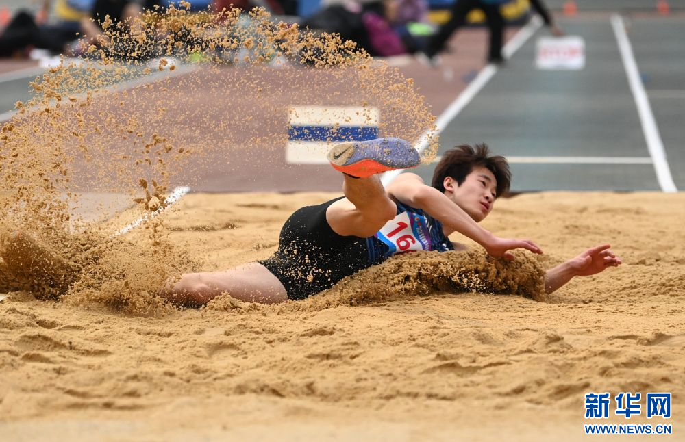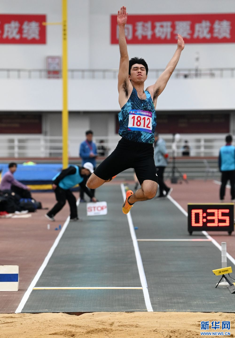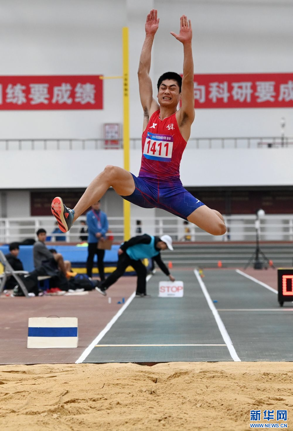 3月2日,四川队选手韩伯苓在男子跳远决赛中。最终,他以7米05的成绩获得第19名。新华社记者 李一博 摄pagebreak