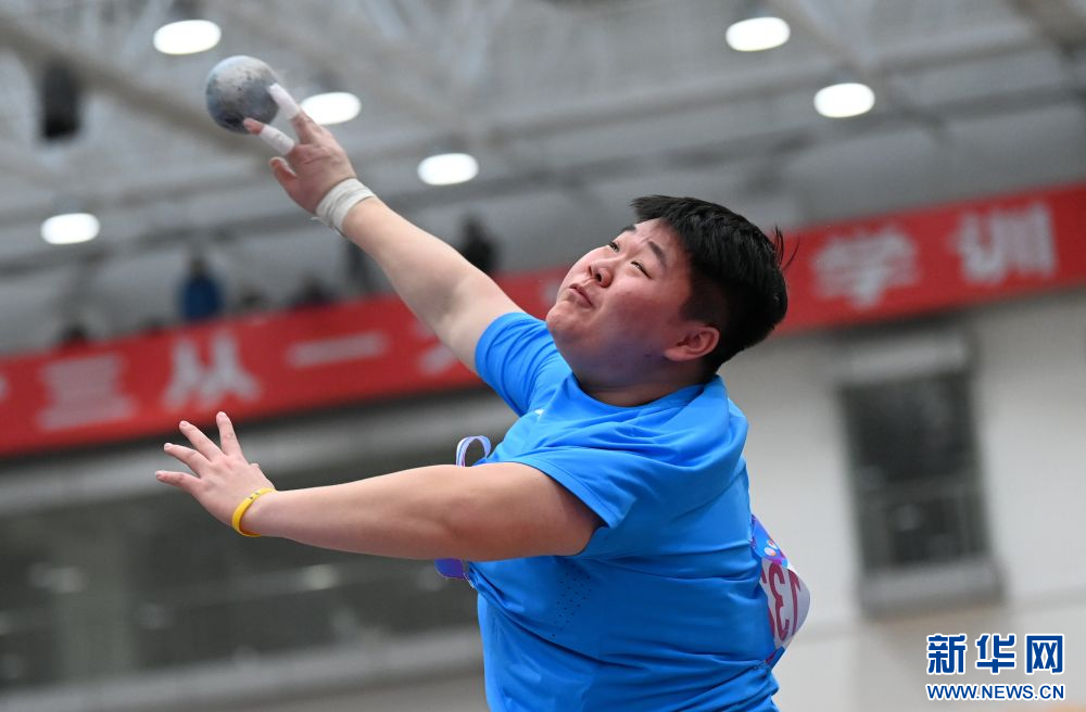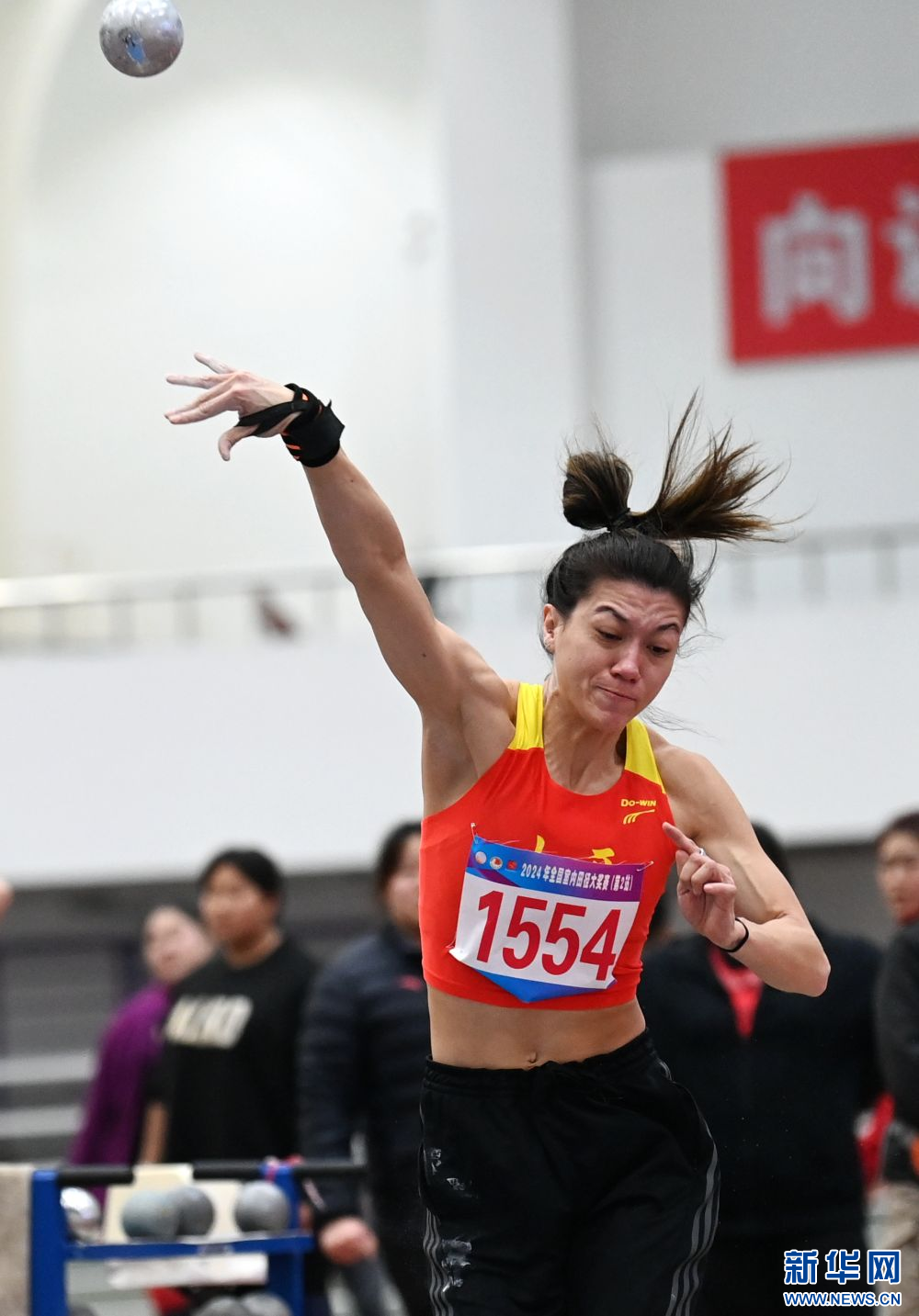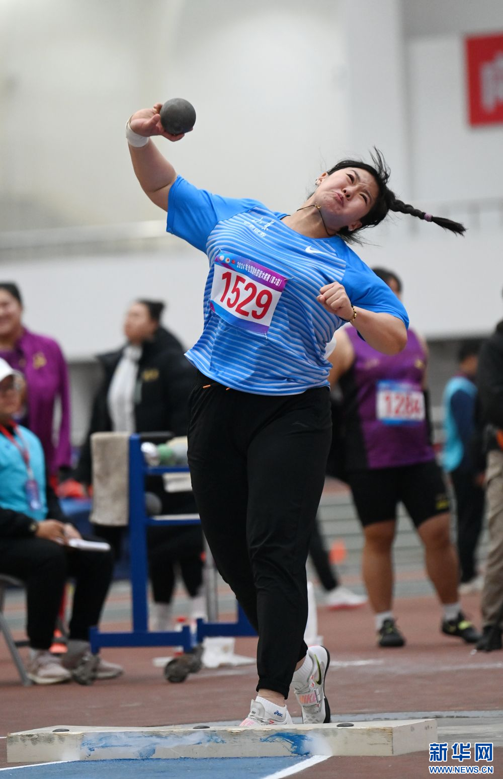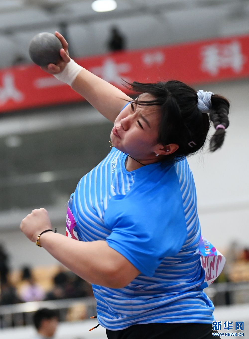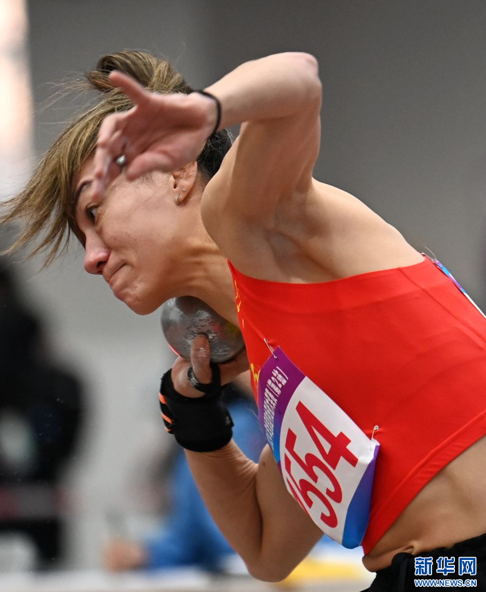 3月2日,河北队选手马越在女子铅球决赛中试投。最终,她以17米01的成绩获得亚军。新华社记者 李一博 摄pagebreak
