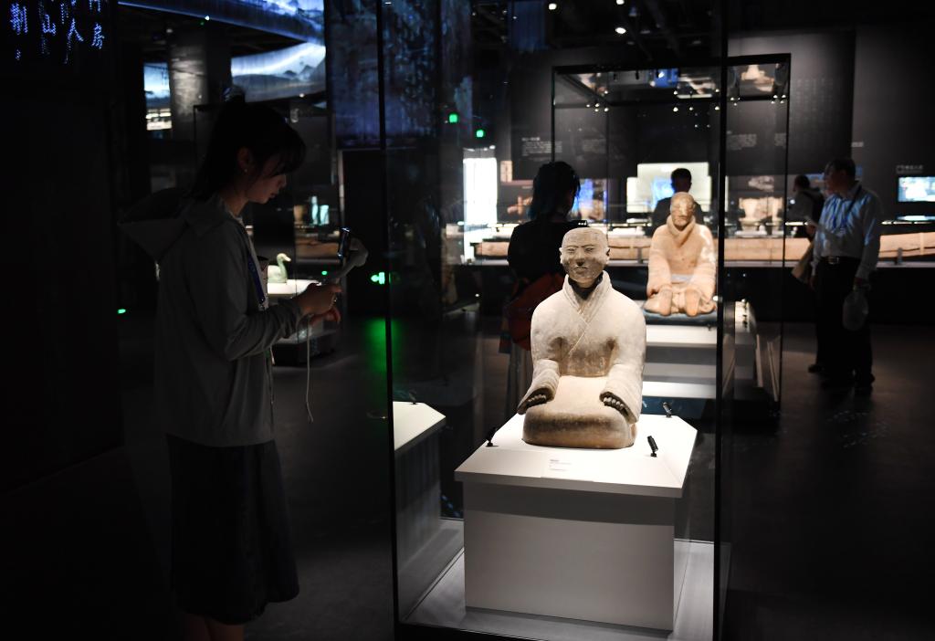 5月18日,观众在陕西历史博物馆秦汉馆观看“城与陵”专题陈列。新华社记者 李一博 摄