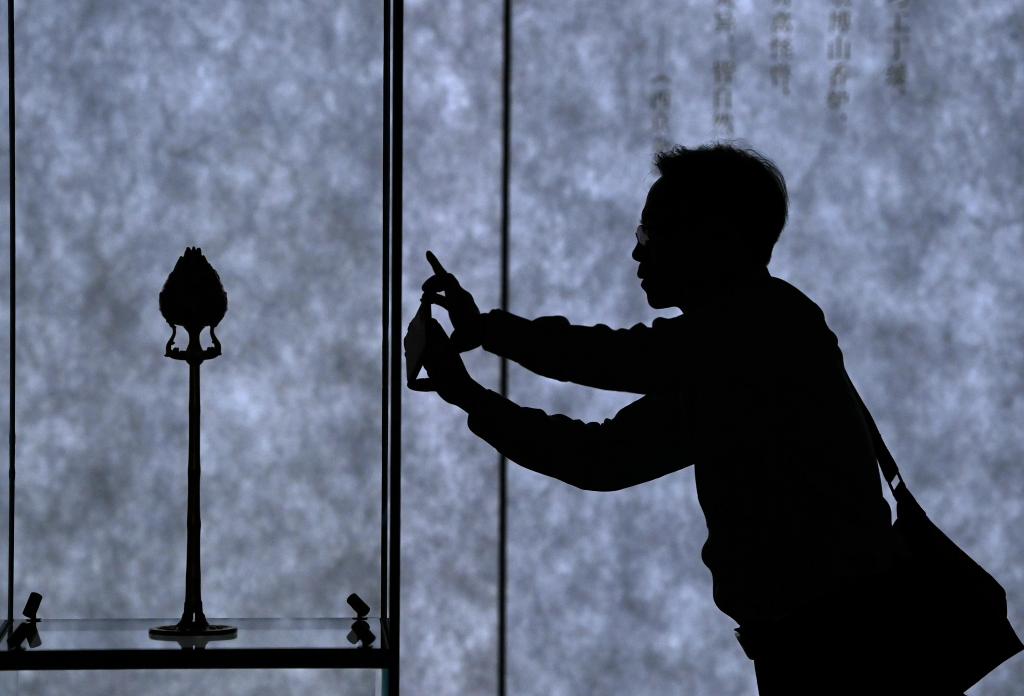 5月18日,观众在陕西历史博物馆秦汉馆观看“技与美”专题陈列。新华社记者 李一博 摄