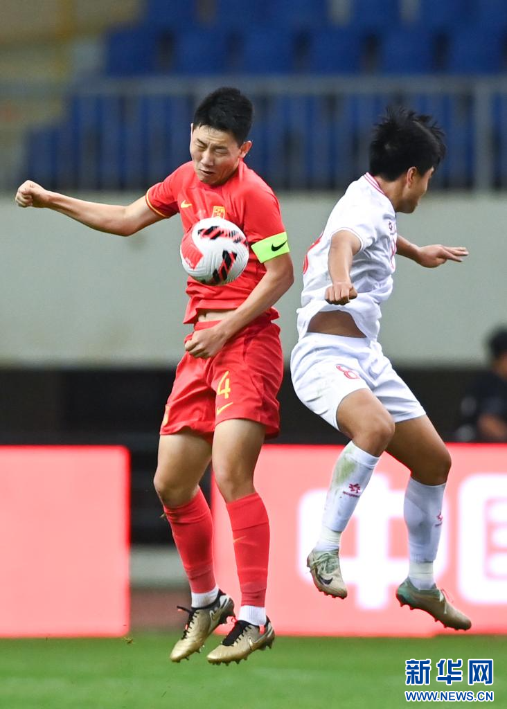6月4日,中国队球员史松宸(左)和越南队球员阮公凤在比赛中争顶。新华社记者 邹竞一 摄pagebreak
