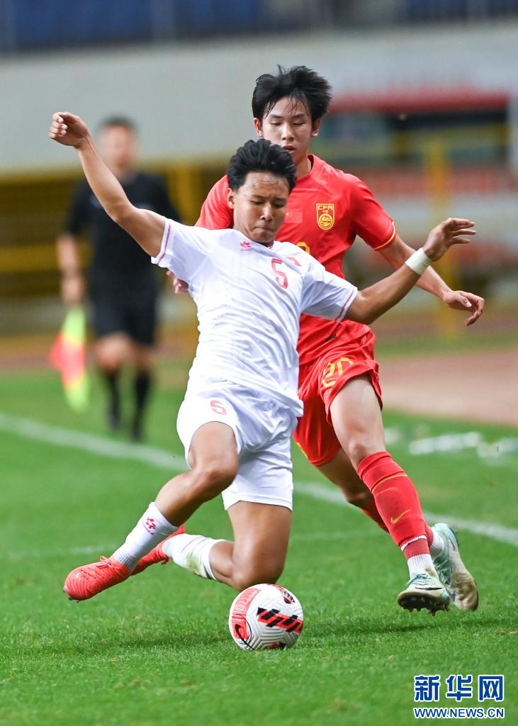 6月4日,中国队球员宁方泽(左)在比赛中拼抢。新华社记者 邹竞一 摄pagebreak