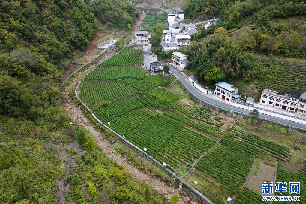 白河县卡子镇凤凰村发展的茶园(2024年10月21日摄,无人机照片)。