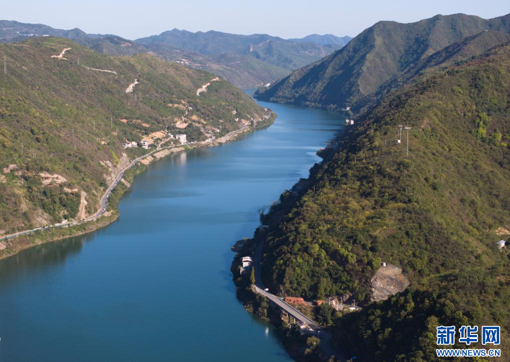白河县汉江出陕断面附近的景色(2024年10月22日摄,无人机照片)。