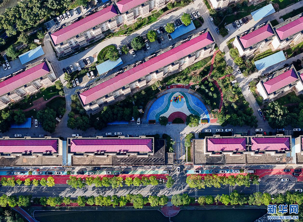 9月25日,余晖洒落下的黄龙县城静美如画。