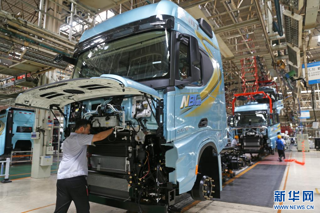 在陕西汽车控股集团有限公司汽车总装配车间,工人进行装配生产工作。新华网 王智超摄pagebreak