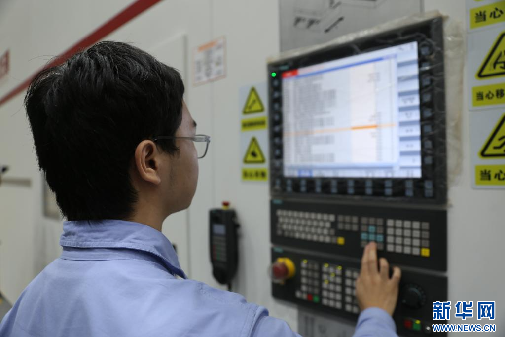 在西安三角防务股份有限公司内,生产工人正在进行零部件加工。新华网 王智超摄pagebreak