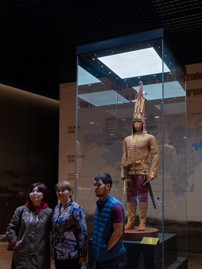 哈萨克斯坦国家博物馆内伊塞克金人墓出土服饰及武器复原展示 李木子 摄