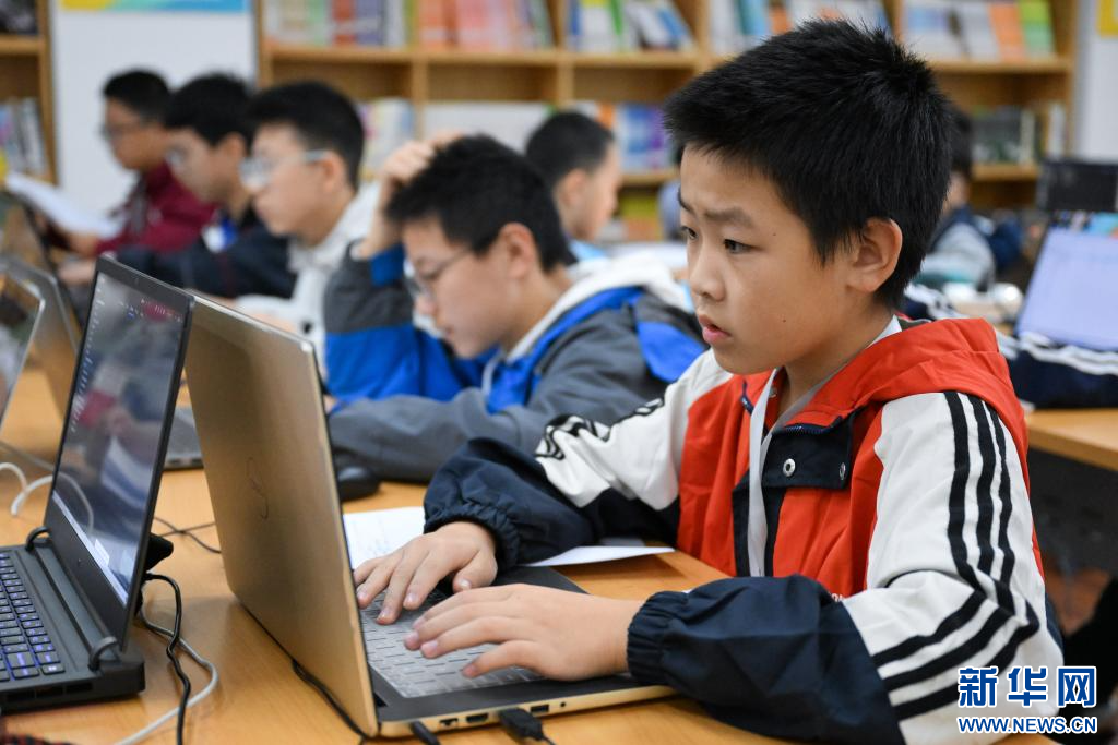 10月18日,学生在西安市新城区太华路小学参加人工智能创意编程挑战赛。