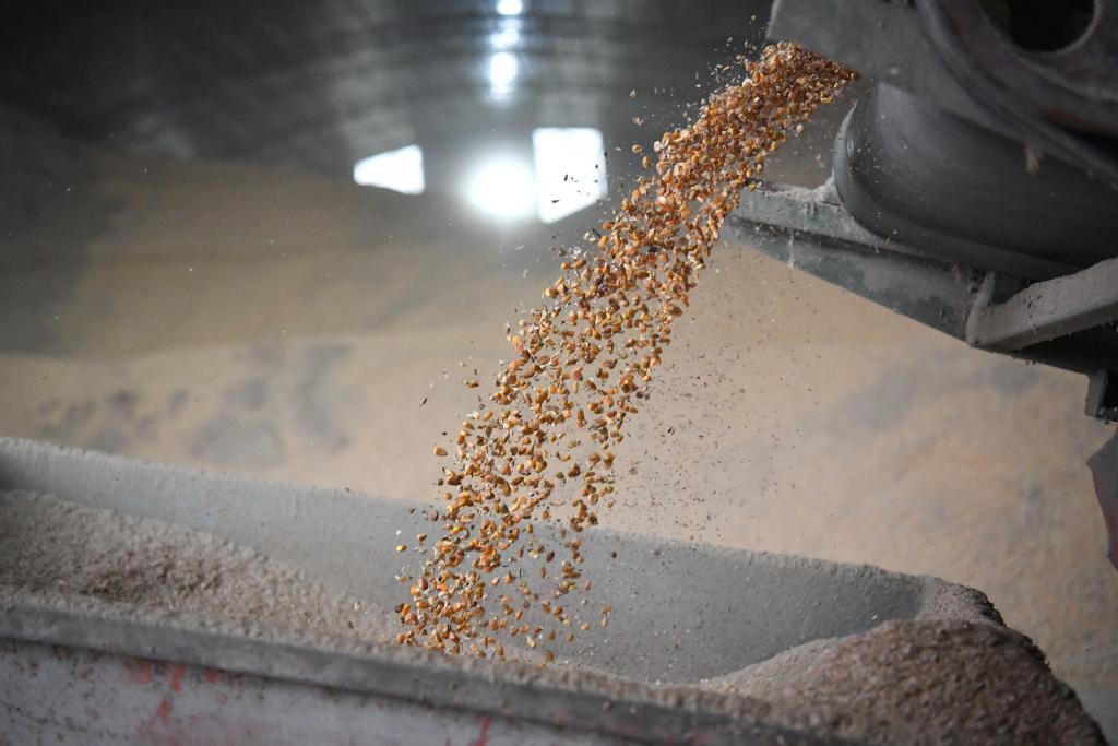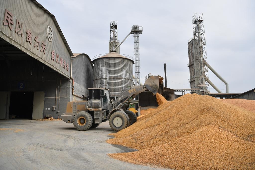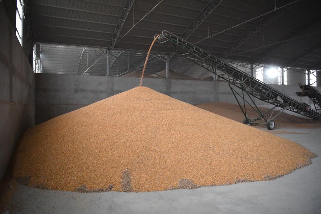 这是陕西省乾县新阳镇三星村秋粮收购烘干服务点烘干后入库的粮食(10月20日摄)。新华社记者 邵瑞 摄