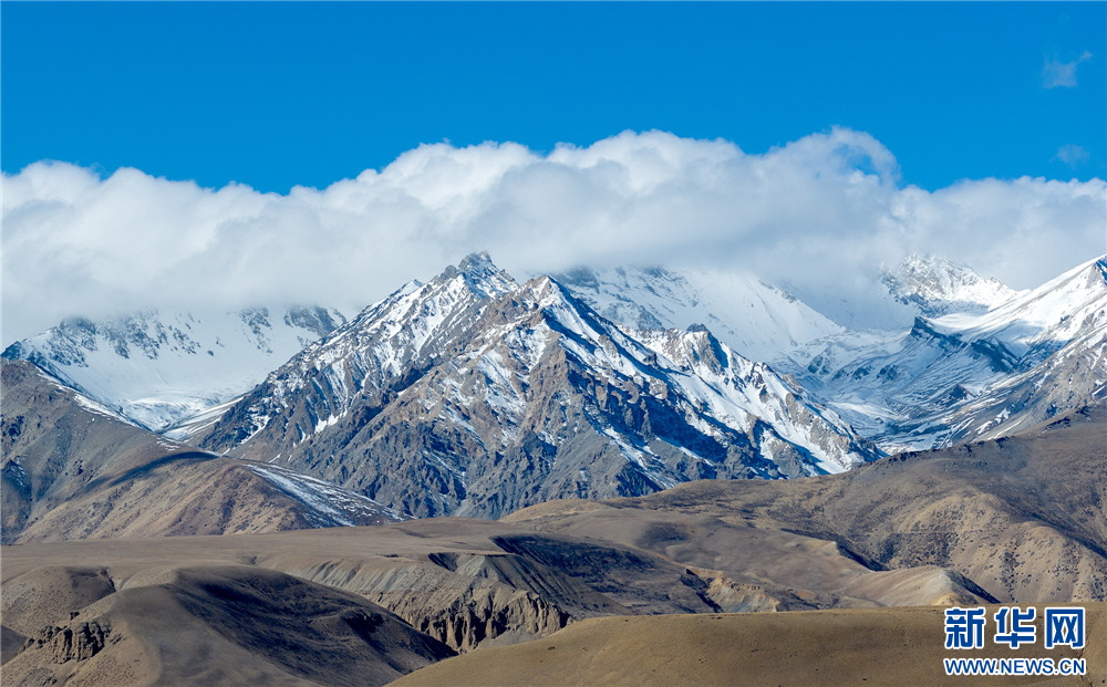 在阿里地区普兰县清晰可见的喜马拉雅山脉。新华网发
