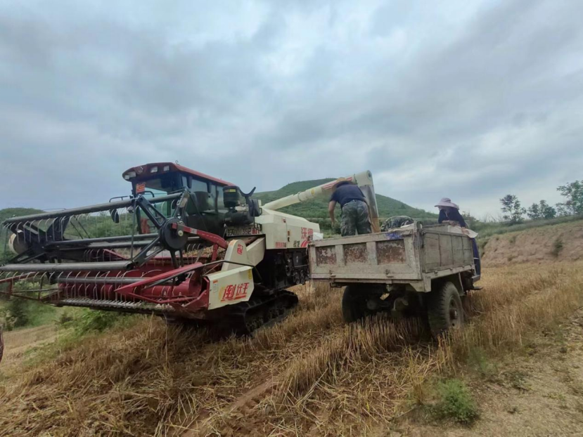 图为渭滨烟草捐赠收割机帮助卒落村民收割小麦(来源:渭滨烟草)