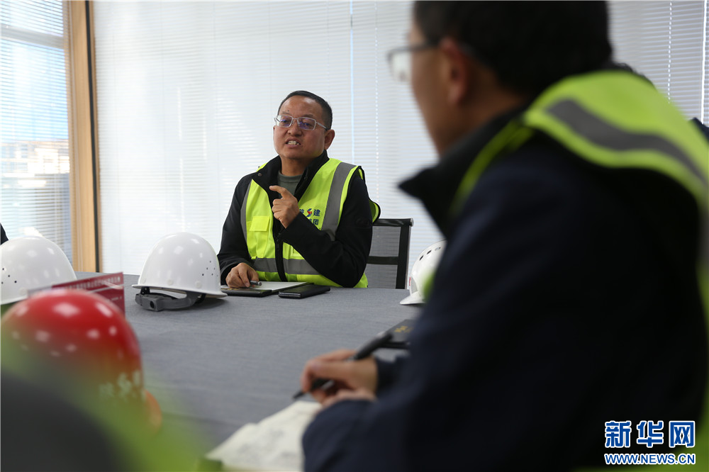 于卫刚在会议室主持项目部建设例会。新华网 王智超摄pagebreak