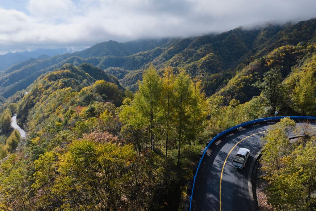 10月30日拍摄的镇坪县境内化龙山秋日景色(无人机照片)。