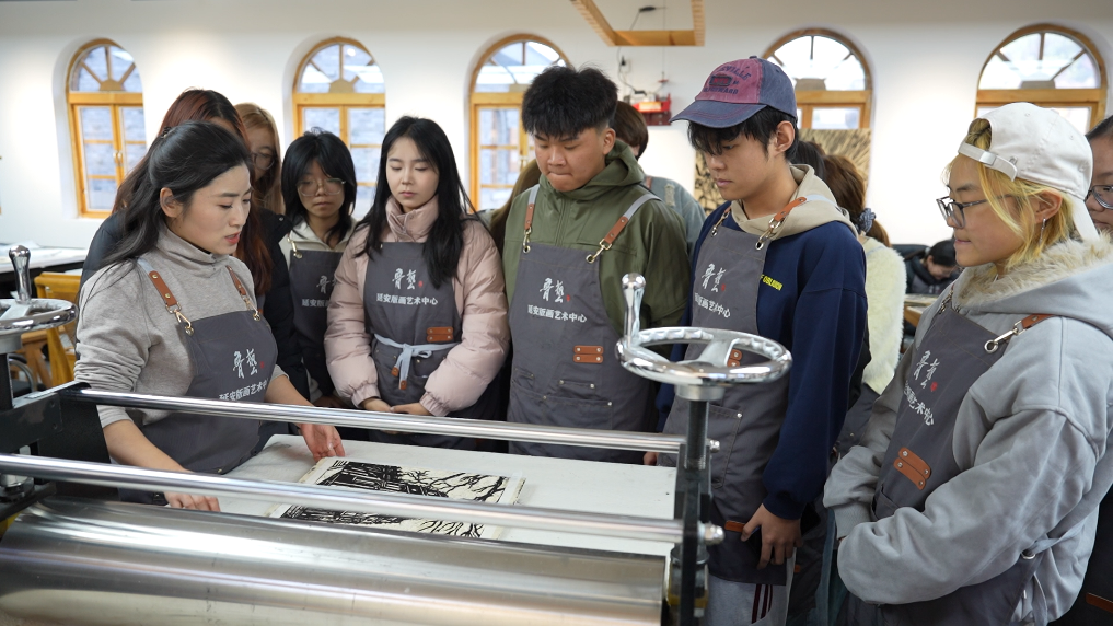 近日,延安大学鲁迅艺术学院美术学专业的学生,在延安版画艺术中心开展版画创作实践。