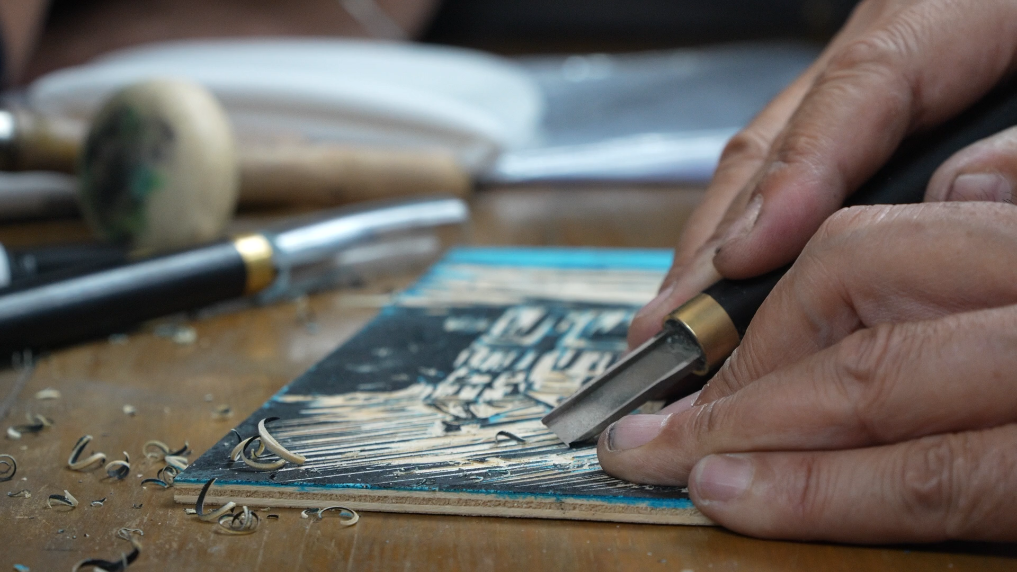 木刻版画是创作者在木板上刻出反向图像,再印于纸上的艺术形式。如今,在陕西延安版画艺术中心,这种具有感召力的艺术形式,正得到新的传承与发扬。