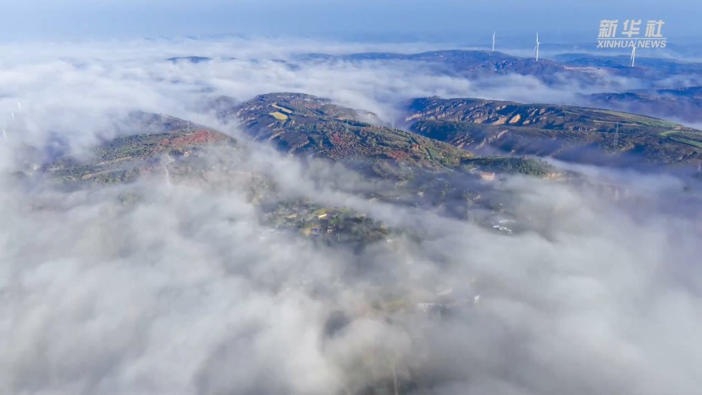 初冬时节,地处黄土高原的陕西榆林市榆阳区古塔镇杏树岭景区烟雾缭绕,梦幻缥缈。