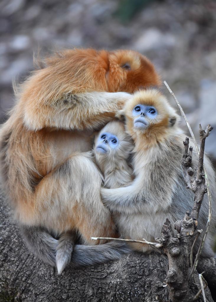 “我们监测发现,这个金丝猴种群有340只,今天来了约200只。冬天食物比较短缺,金丝猴有时会分成小群寻找食物。”陕西周至国家级自然保护区双庙子保护站副站长乔冰勃说,“这个金丝猴种群中今年出生的幼猴有46只,总数从2022年监测之初的180只,到2023年的240只,又增加到现在的340只。可以说是不断‘添丁进口’。”