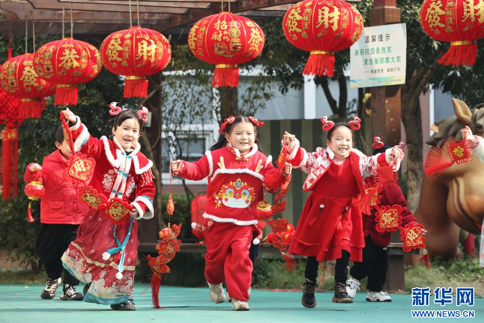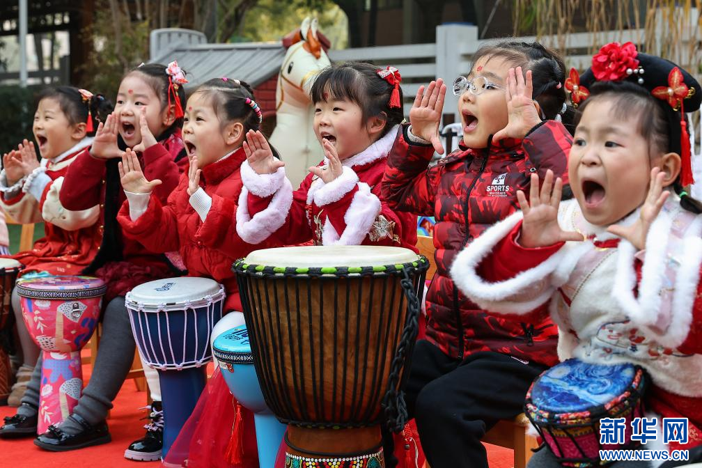 元旦将至,各地中小学校和幼儿园组织多彩活动,欢乐喜庆迎接新年。