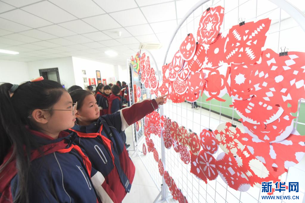 12月30日,河北省石家庄市天苑小学学生在非遗剪纸课堂上学习剪纸技艺。