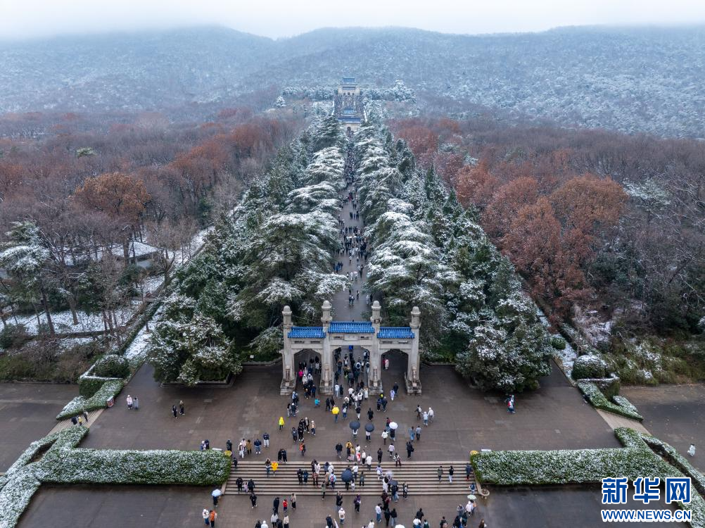 2026年1月1日,游客在南京紫金山赏雪、游玩(无人机照片)。