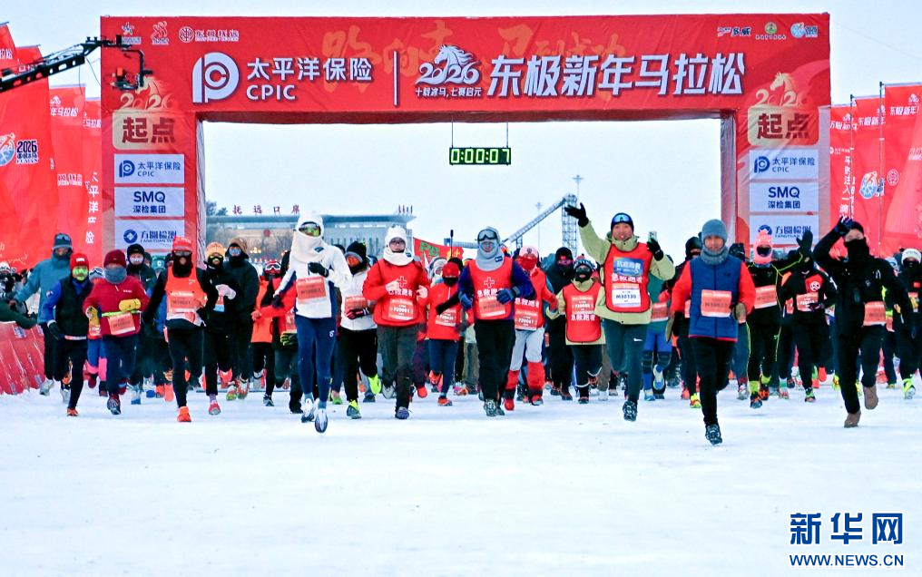 2026年1月1日,参赛选手在2026东极佳木斯抚远新年马拉松比赛中出发。