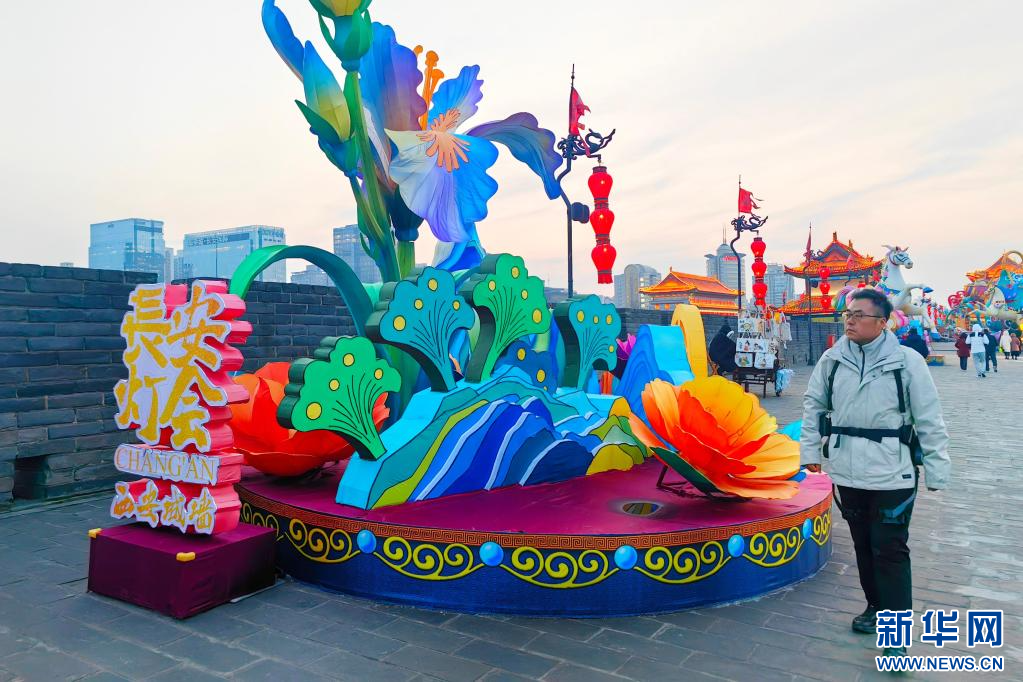 2026年1月4日,赵彬在西安城墙新年灯会期间带着城墙外骨骼机器人巡查。