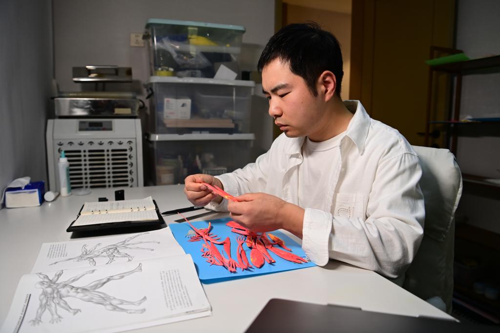 新华社西安1月22日电(记者张思洁)镊尖轻点,一片不足指甲盖大小的糖制“颅顶肌”精准贴合在“头骨”之上;手指微捻,缕缕糖丝瞬间定格为飘逸的“胡须”……在陕西西安,“95后”糖艺师张勃用外科手术般的精细操作,为糖塑作品搭建“骨骼”“肌肉”和“血管”,让哪吒、关公等经典人物形象由内而外“重生筋骨”。一门承载着许多人甜蜜记忆的老手艺,正在他的手中焕发令人惊叹的“硬核”生命力。