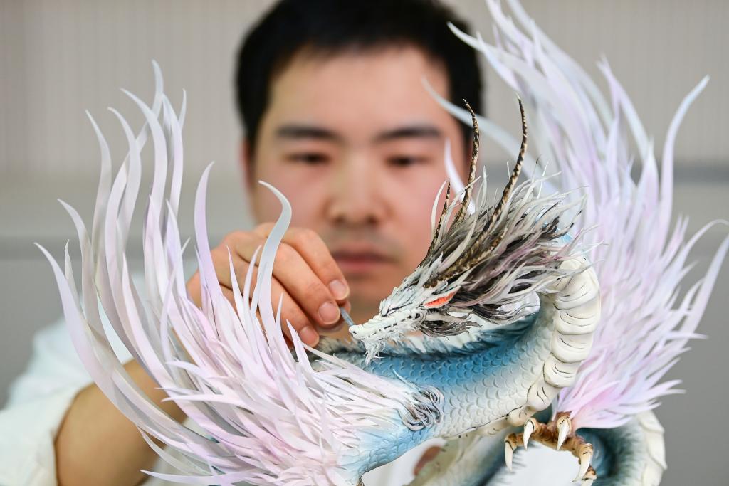 1月13日糖艺师张勃在制作糖艺作品《山海经应龙》。新华社记者 邹竞一 摄