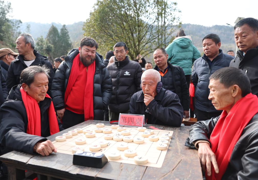 1月23日,象棋爱好者在平利县西河镇磨沟村参加“乡村棋王争霸赛”。