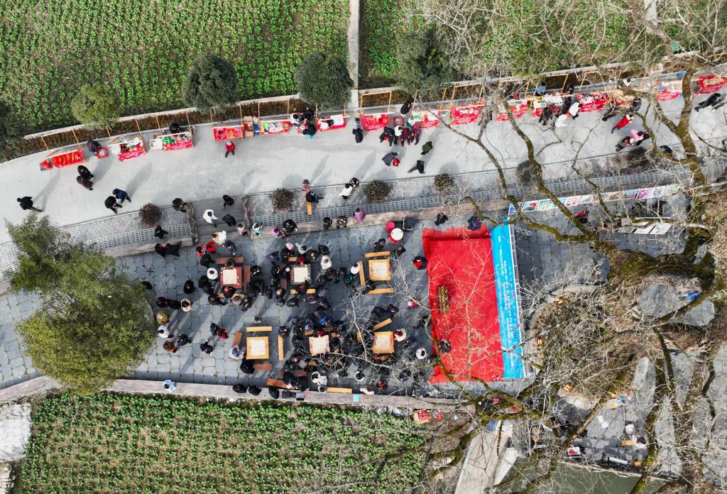1月23日,象棋爱好者在平利县西河镇磨沟村参加“乡村棋王争霸赛”(无人机照片)。