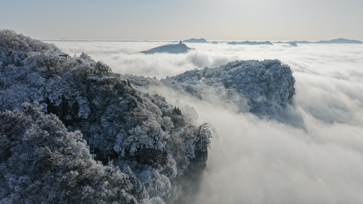 1月23日,在汉中龙头山观景台远眺,银装素裹的山峦与翻涌云海相映成趣。(宋晓丽 摄)pagebreak