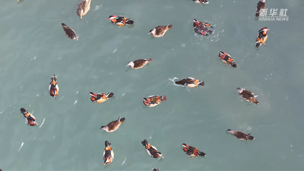寒冬时节,在陕西省富县张村驿镇葫芦河段,一群“水上精灵”鸳鸯的到来,为静谧的水面增添了灵动与生机。