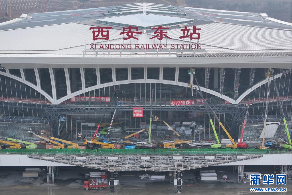 记者从中国铁路西安局集团有限公司了解到,特大型铁路综合交通枢纽西安东站春节期间持续施工,目前已完成总建设进度的90%。车站室内装修、配套设施安装等工作全速开展,轨道工程进入全面精调阶段,站场线路设备正进行集中整治,站场及动车所已启动静态验收,为后续建成开通、高质量投用运营奠定坚实基础。
