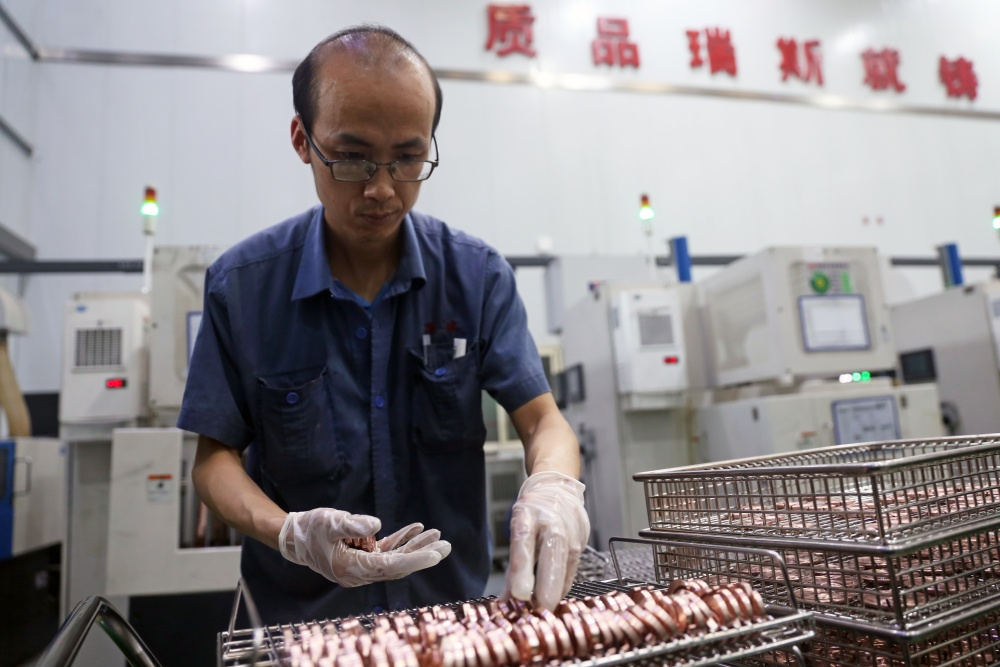 工作人员在陕西莱特光电材料股份有限公司升华生产车间工作。新华网 王智超摄