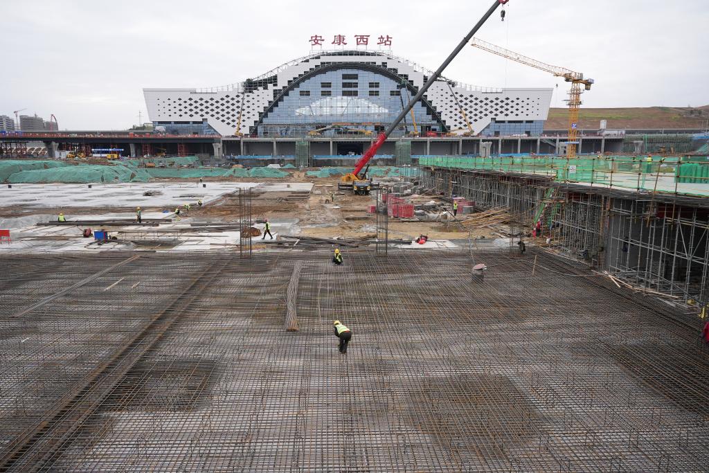 建设中的安康西站(3月18日摄)。