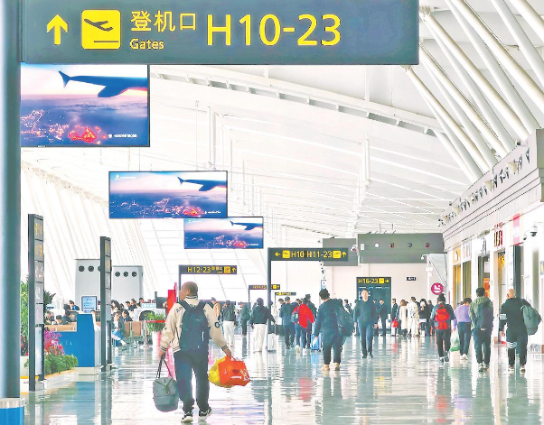 3月29日,榆林榆阳机场候机大厅内客流如织。谢妮妮 摄