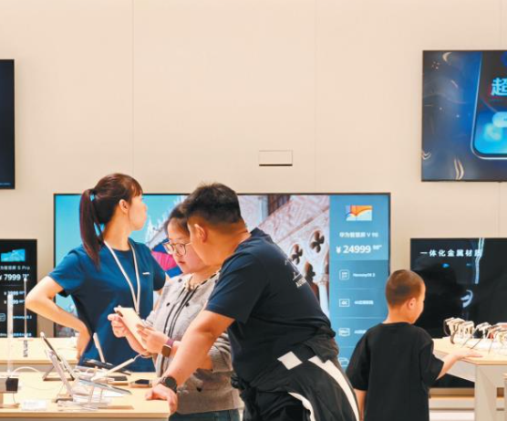 4月6日,消费者在西安龙首印象城选购手机、平板电脑等电子产品。 本报记者 许奥博摄