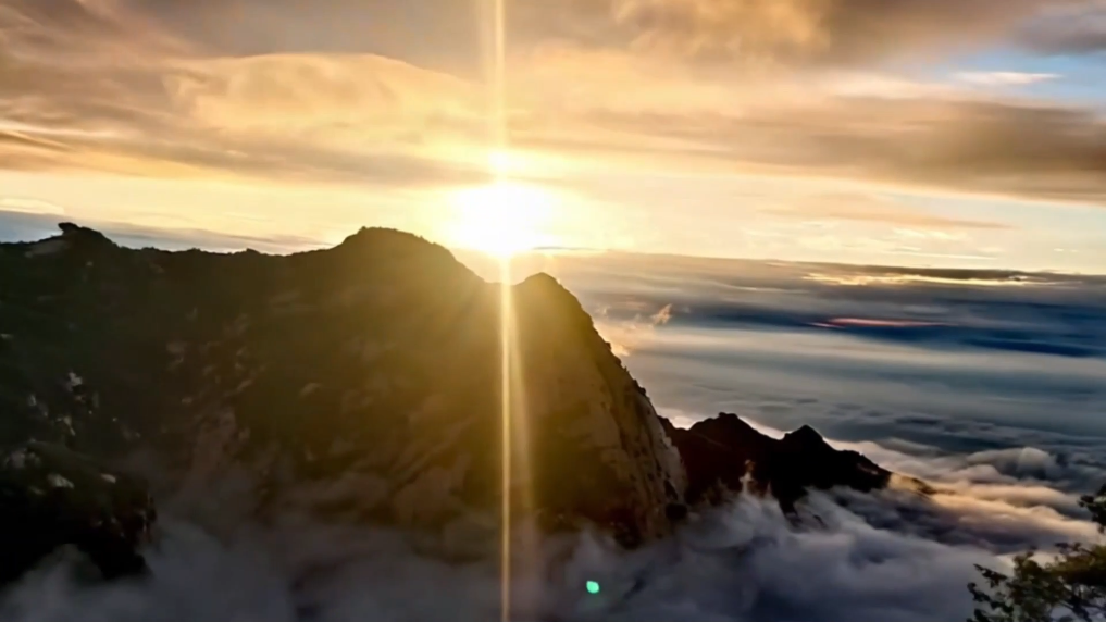 近日,一场春雨过后,西岳华山迎来壮丽日落景观。