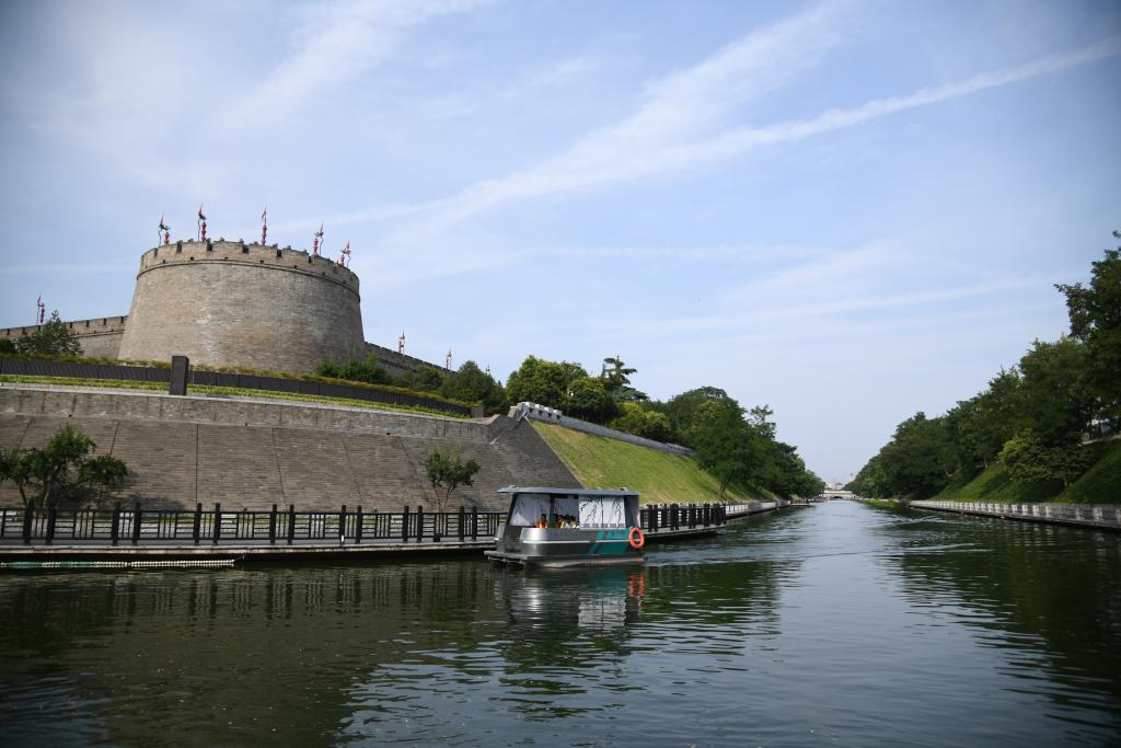 新华社记者张博文 摄这款名为“汐”的新能源智能游船无需人员进行实时操控即可自动按照设置好的点位行进、转弯、掉头、避让达到了L4级自动驾驶为欣赏风光的游客带来了更加舒适安全的乘坐体验智能清洁船在西安护城河作业。